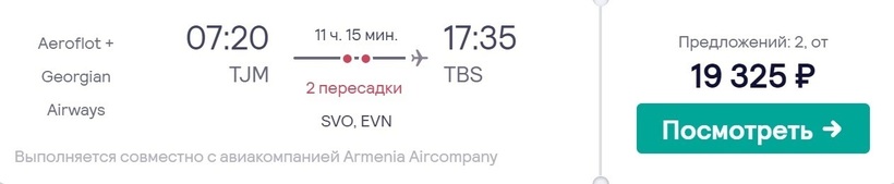 С тем же «Аэрофлотом» и Georgian Airways (совместно с Armenia Aircompany) до конечного пункта доберетесь за 11 ч. Стоимость авиабилетов — от 19300, если бронировать за несколько недель.