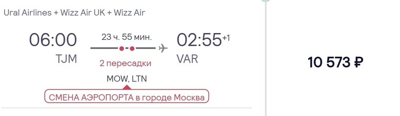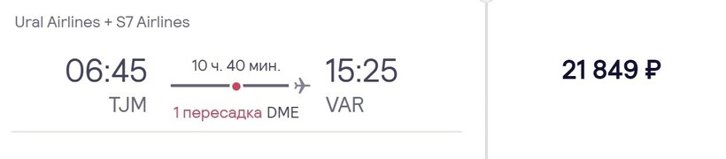 Рейсы Тюмень — Варна осуществляет только одна авиакомпания - Ютэйр. Минимальная стоимость билета составит 49 223 рублей.