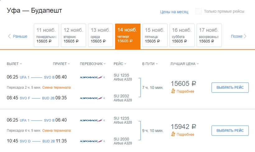 Другие варианты перелета можно посмотреть у авиакомпаний: