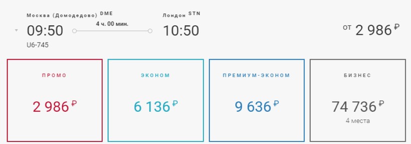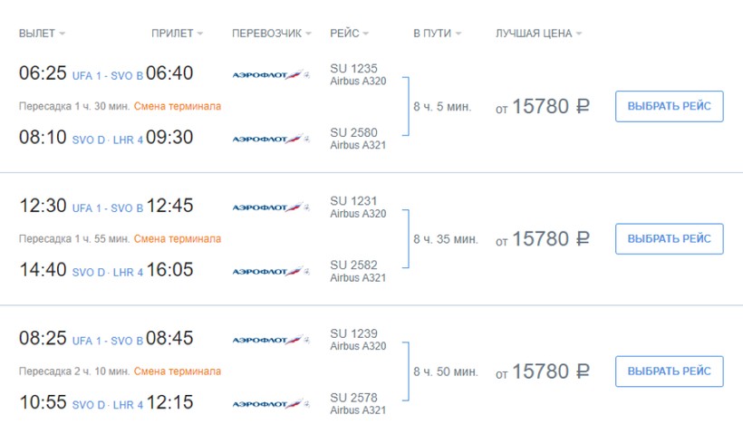 Самый крупный российский перевозчик может похвастаться наиболее разнообразным расписанием полетов. Он предлагает больше 15 различных вариантов полетов, часть из которых выполняется его дочерней компанией «Россия». Я же рекомендую выбирать утренние вылеты, потому что так можно добраться быстрее всего. Лайнеры долетают до Лондона за 8 с небольшим часов.