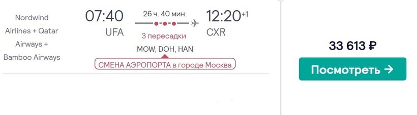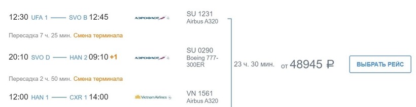 На экзотический курорт, расположенный на восточном побережье Вьетнама, из столицы республики Башкортостан можно попасть только транзитом. Прямые самолеты туда не летают. Добраться до этого вьетнамского города можете с одной из самых известных авиакомпаний РФ «Аэрофлот» и Vietnam Airlines. Вариант перелета предполагает две стыковки — в Москве и Хошимине. На них уйдет около одиннадцати часов. Общее время в пути — почти сутки. За 1,5 месяца до авиапутешествия авиабилеты только туда можно купить за 49000 рублей.