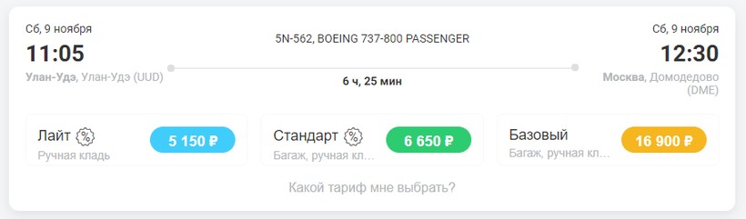 | S7 Airlines (S7 3034) Airbus А320 | 09:30 Улан-Удэ (UUD) | 6 ч. 45 мин | 11:15 Москва (DME) | 18 ноября |