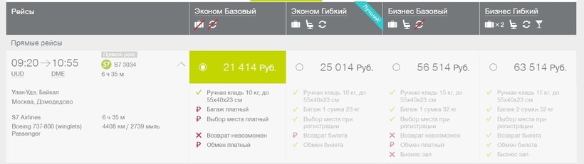 | S7 Airlines (S7 3034) Boeing 737-800 | 10:40 Улан-Удэ (UUD) | 6 ч. 45 мин | 12:25 Москва (DME) | 20 ноября |