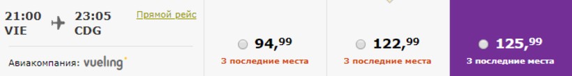 | Austrian (OS 369) Airbus А320 | 20:25 Вена (VIE) | 2 ч. 05 мин | 22:30 Париж (CDG) | 26, 27, 28, 29, 30 ноября, 1, 2, 3, 4, 5, 6, 7, 8, 9, 10, 11, 12, 13, 14, 15 декабря, … |