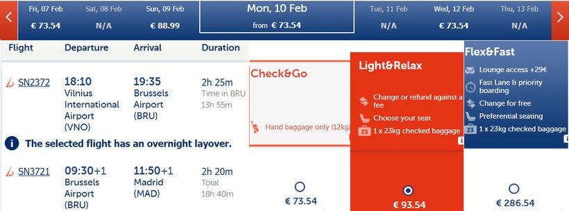 Между литовской и испанской столицами круглогодичное прямое авиасообщение не налажено. Преодолеть расстояние между городами без пересадок получится только в период с конца марта по конец октября (подробнее расскажу далее). В остальное время года попасть в Мадрид можно стыковочными рейсами со следующими операторами: