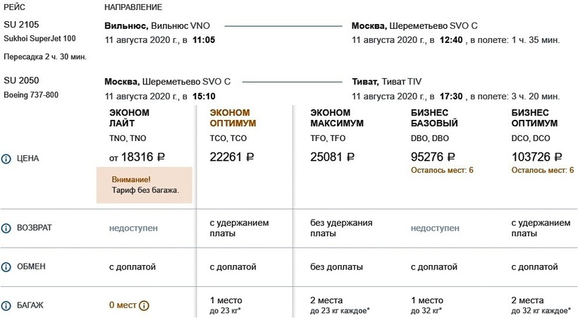 Авиасообщение между столицей Литвы и курортом Черногории не могу назвать очень развитым — прямые рейсы по маршруту сезонные, а круглогодичные перелеты с одной стыковкой предлагает только компания «Аэрофлот». Расписание полетов у российского оператора удобное — ежедневно выполняется по одному авиарейсу через Шереметьево. С пересадкой в 2–2,5 часа авиаперелет занимает 7–7,5 ч. Билеты у «Аэрофлота» в одну сторону с багажом стоят от 22500 ₽, туда-обратно можно купить за 33500 ₽. Бизнес-класс — от 95500 ₽.