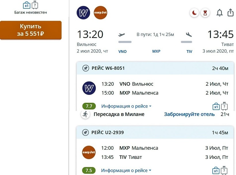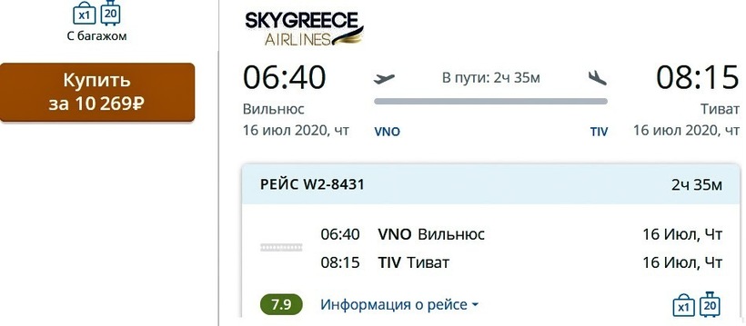 FlexFlight (W2 331) Airbus А320 | 06:30 Вильнюс (VNO) | 2 ч. 20 мин | 07:50 Тиват (TIV) | 5 октября |