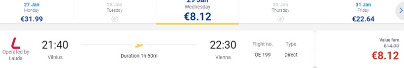 Из литовской столицы до австрийской предусмотрены как прямые, так и транзитные рейсы разных операторов. По моему мнению, наиболее оптимальные варианты перелета предлагают своим клиентам следующие перевозчики: