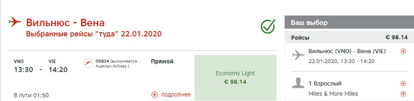 Билеты стоят дороже, нежели у лоукостера — от 98 евро (около 7000 рублей). Зато даже в самый дешевый тариф Economy Light уже включены питание и напитки. Правда, если хотите лететь с багажом, будьте готовы доплатить до тарифа Economy Classic, его стоимость стартует от 120 евро (9000 рублей). Заметила, что у этого оператора выгоднее оплачивать перелет сразу туда и в обратном направлении. Допустим, путешествие из Вильнюса до Вены и обратно обойдется вам в 108 евро (8000 рублей). Если брать два авиабилета по отдельности, то сумма вырастает в два раза.
