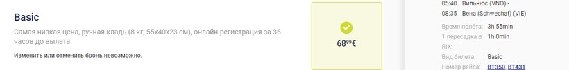 Basic + багаж. Если я путешествую с airBaltic, то обычно беру его, потому что тогда можно взять с собой чемодан, чей вес не превышает 20 килограмм.