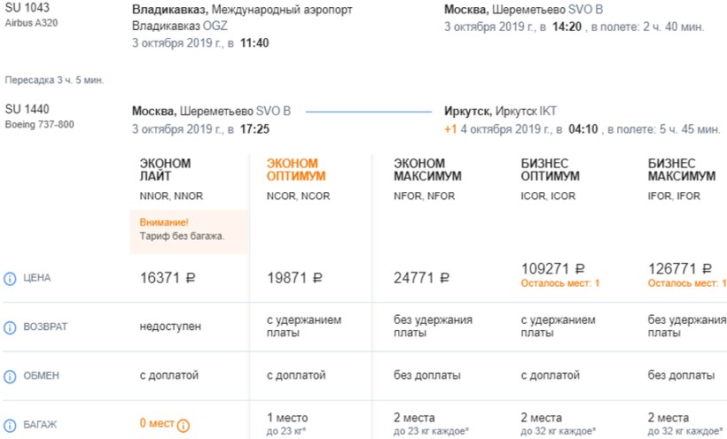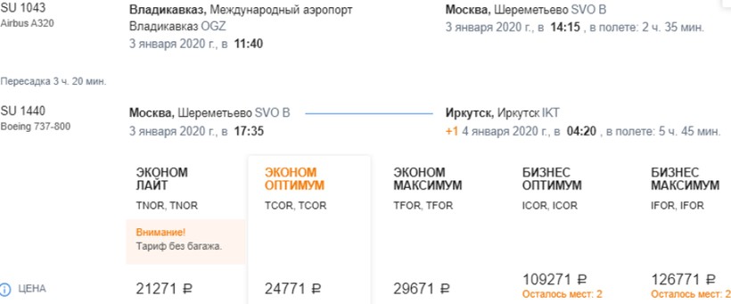 Самый дешевый стыковочный авиаперелет по маршруту предлагает бюджетная компания «Победа». Но минус в том, что рейсы у нее сезонные — с конца октября по апрель. Самолеты вылетают также раз в день (днем), и с двухчасовой пересадкой во Внуково до Иркутска доставят за 10,5 часа.