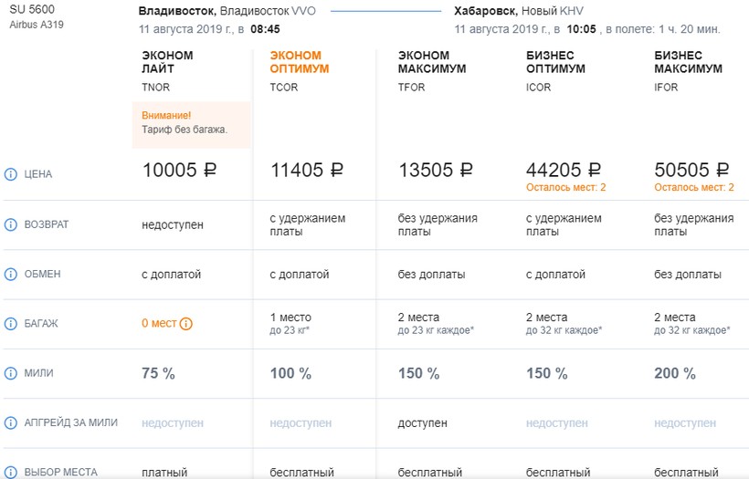 | Россия (FV 5701) Сухой Суперджет 100 | 14:35 Владивосток (VVO) | 55 мин | 15:30 Хабаровск (KHV) | вт, пт, вс с 02.01 по 27.03 |