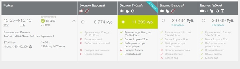 Обычно билеты по минимальным тарифам разбираются в первую очередь — S7 не исключение. Если лечу с ними, покупаю авиабилеты сразу туда-обратно (так немного экономлю) и за несколько месяцев до отправления (гарантировано в продаже есть нужный мне бюджетный тариф «Базовый»).