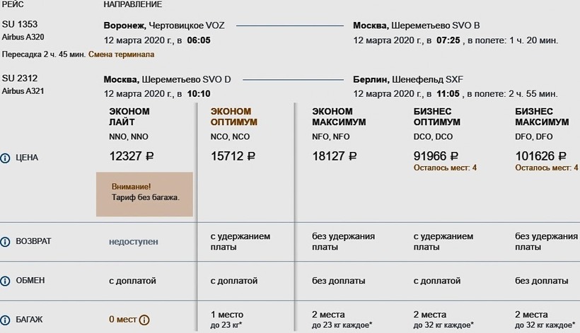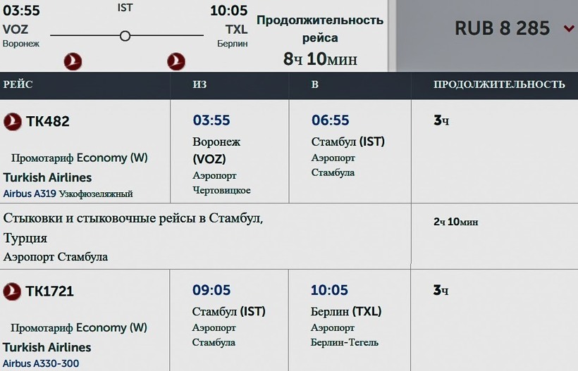 Рейсы Воронеж — Берлин осуществляет только одна авиакомпания - Сибирь. Минимальная стоимость билета составит 32 809 рублей.