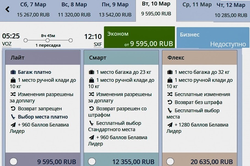 Другие варианты перелета можно посмотреть у авиакомпаний: