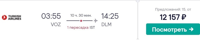 Добраться до этого турецкого города из Воронежа можно только транзитом. Расскажу про самые актуальные варианты. Turkish Airlines и Pegasus Airlines смогут доставить до конечного пункта за 9,5 часов. Билеты только туда за пару недель купите за 12100 рублей.