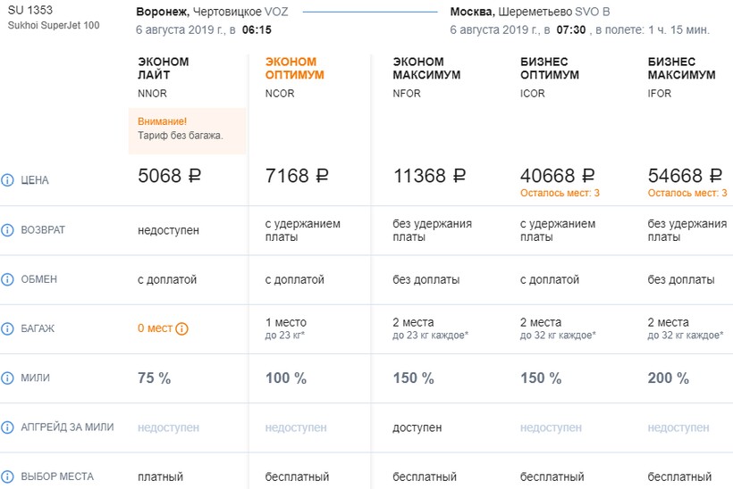У «Аэрофлота» существует удобная система тарифов для экономкласса, позволяющая купить билеты по разной стоимости в зависимости от необходимых вам опций.