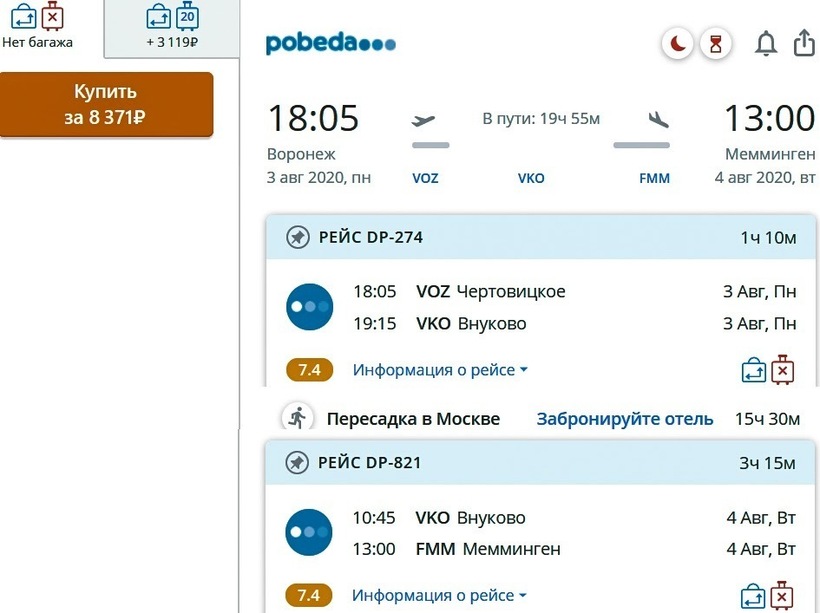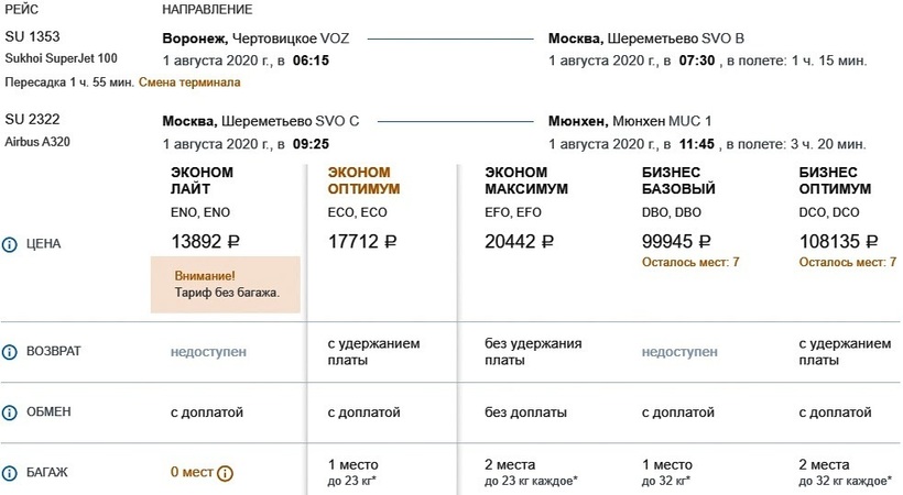 Рейсы Воронеж — Мюнхен осуществляет только одна авиакомпания - Сибирь. Минимальная стоимость билета составит 34 689 рублей.