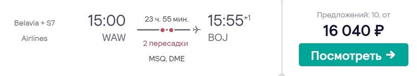 Wizz Air (W6 1561) Airbus A320 | 17:30 Варшава (WAW) | 2 ч. 15 мин | 20:45 Бургас (BOJ) | вт, сб с 09.06 |