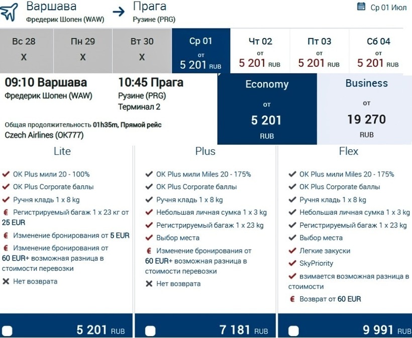 — цена ниже на 3800–5100 ₽, чем у Czech Airlines,