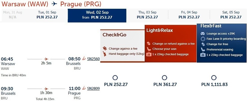 Lot (LO 521) Boeing 737 | 16:05 Варшава (WAW) | 1 ч. 15 мин | 17:20 Прага (PRG) | 2 октября |