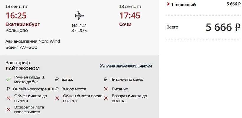 Nordwind (N4 504) Airbus А330-300 | 05:30 Екатеринбург (SVX) | 3 ч. 50 мин | 07:20 Сочи (AER) | 7 октября |