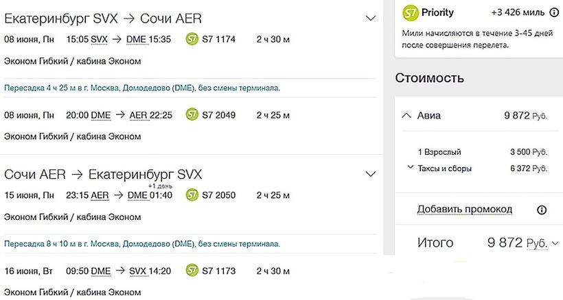 Билеты «туда-обратно» в октябре обойдутся вам всего в 10 093 рубля, а в июле придется заплатить за них не менее 42 742 рубля. В среднем же, долететь до Сочи и вернуться в Екатеринбург можно за 25 136 рублей.