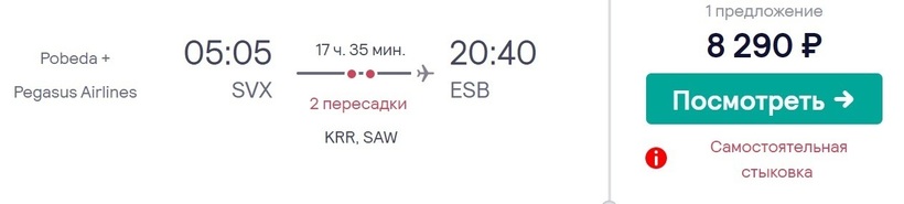 Это более дешевый вариант авиапутешествия, которым я пользовалась. Потратив 17,5 часов, и сделав две пересадки, до Анкары можно добраться за 8300 рублей (если покупать проездные за полтора месяца). Перевозчики — «Победа» и Pegasus Airlines. Первая пересадка в Краснодаре (аэропорт Пашковский) — 6 ч., вторая в Стамбуле (авиаузел Сабиха Гёкчен) — 5 ч.
