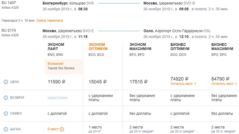 Между Екатеринбургом и норвежской столицей ежедневно выполняется несколько десятков авиарейсов, но прямых среди них нет, и лететь придется транзитом. Лучшие варианты перелетов с одной пересадкой предлагают следующие компании: