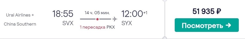 Есть еще более дешевый вариант перелета, но он одновременно и более долгий. Если полететь с «Уральскими авиалиниями» и Changan Airlines через Сиань, то билеты за пару месяцев можно забронировать за 41700 рублей.