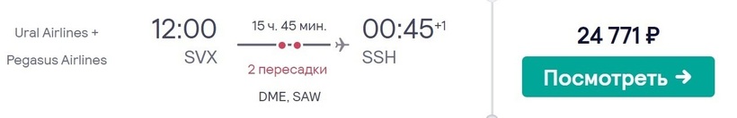 Россия (FV 5569) Boeing 737-800 | 16:45 Екатеринбург (SVX) | 6 ч. 35 мин | 21:20 Шарм-эль-Шейх (SSH) | 5 октября |