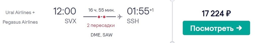 Россия (FV 5569) Boeing 737-800 | 16:35 Екатеринбург (SVX) | 6 ч. 30 мин | 21:05 Шарм-эль-Шейх (SSH) | 2 октября |