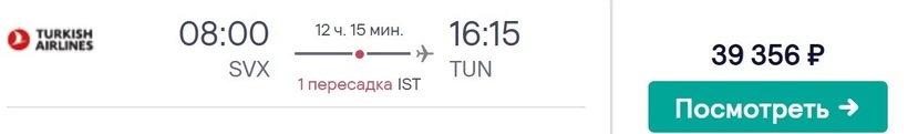 В зависимости от месяца, минимальная стоимость билета на самолет Екатеринбург — Тунис в одну сторону («туда») колеблется от 24 852 (в ноябре) до 42 383 рубля (в июне) , максимальная может доходить до 45 858 рублей, а в среднем купить билет можно за 31 086 – 34 358 рублей.