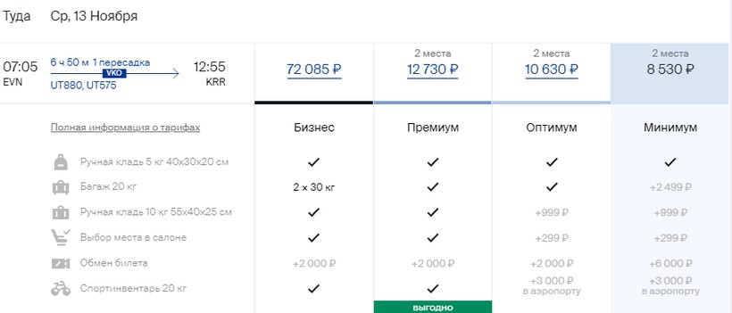 «Оптимальный». Опять же позволяет провозить 10 кг ручной клади и 23 кг багажа, билеты можно вернуть до вылета со штрафом.