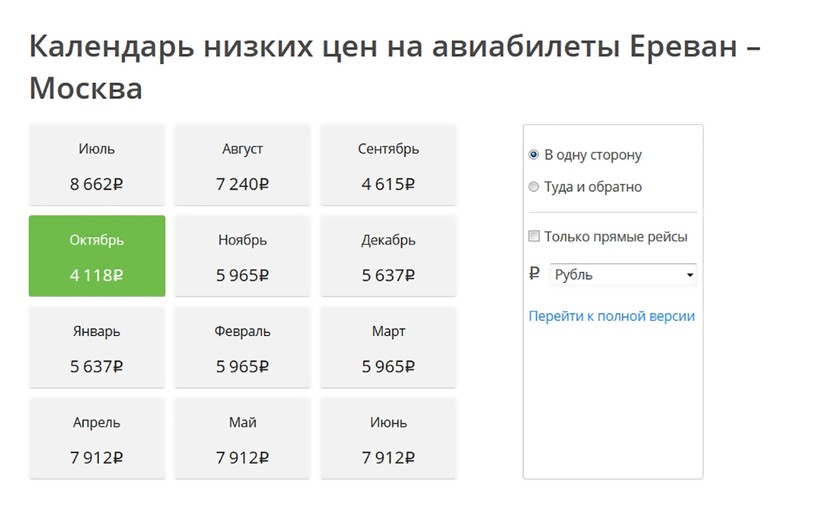 Билеты «туда-обратно» в ноябре обойдутся вам всего в 14 950 рублей, а в июне придется заплатить за них не менее 24 951 рубль. В среднем же, долететь до Москвы и вернуться в Ереван можно за 20 114 рублей.