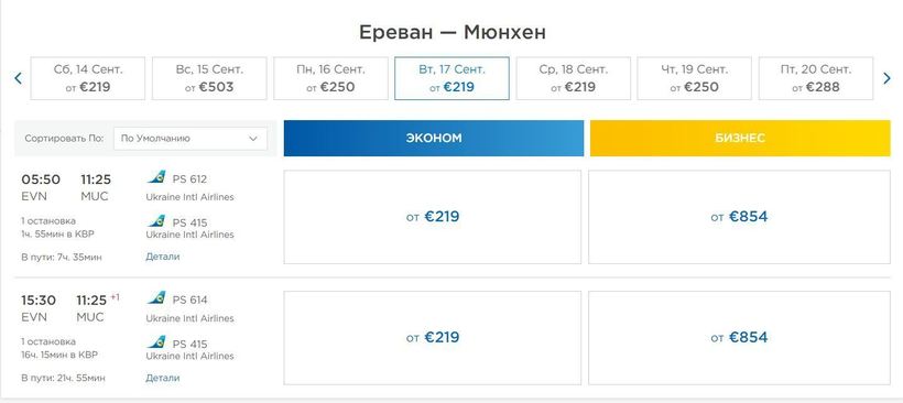 Билеты «туда-обратно» в ноябре обойдутся вам всего в 14 098 рублей, а в сентябре придется заплатить за них не менее 29 326 рублей. В среднем же, долететь до Мюнхена и вернуться в Ереван можно за 22 039 рублей.