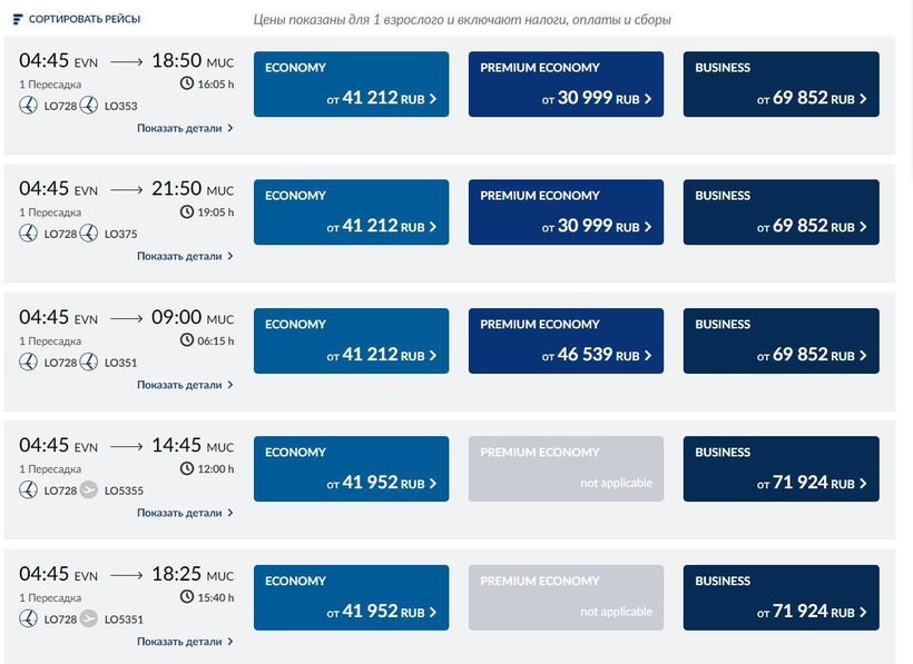 Зимой незначительно меняется расписание. Потому стоит (кстати, также как у остальных операторов) перепроверять информацию онлайн. Билет эконом-класса (тариф Economy Lite) стоит приблизительно 16000 рублей (при покупке примерно за месяц до вылета), включено 1 место ручной клади весом до 7 кг, заблаговременная покупка (за полгода/год) на цену не влияет. Советую обратить внимание на тариф Economy Premium — это возможность взять в Мюнхен 2 багажных места по 23 кг и ручную кладь. Стоимость билета составляет от 20000 рублей, купить его возможно с отсрочкой в месяц и более.