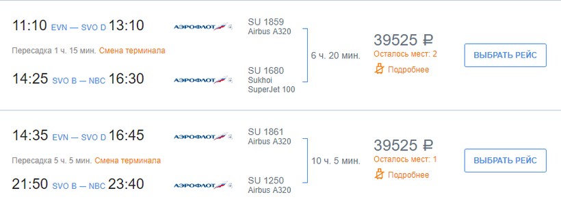 Другие варианты перелета можно посмотреть у авиакомпаний: