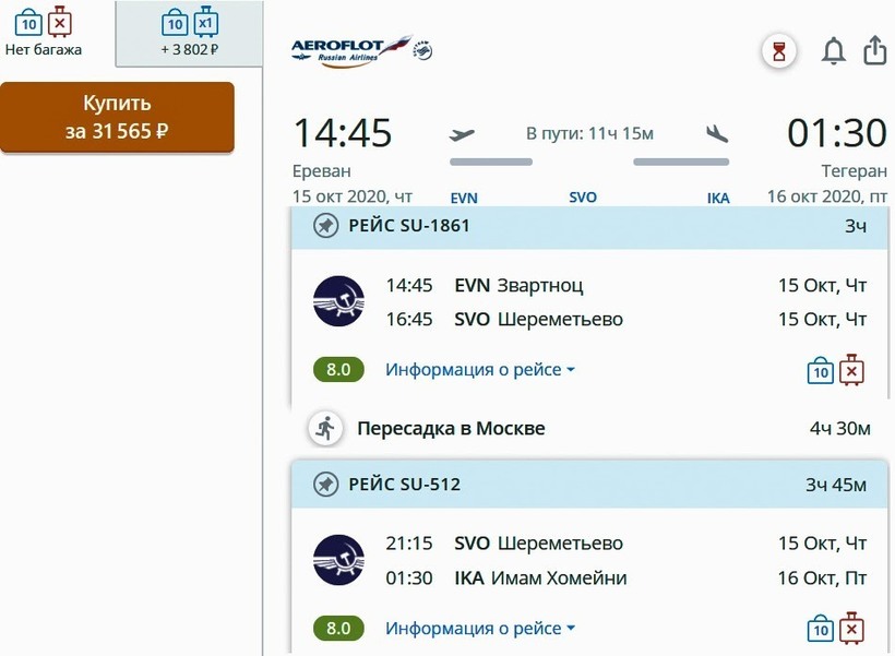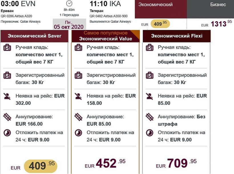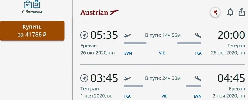 Билеты «туда-обратно» в октябре обойдутся вам всего в 27 703 рубля, а в мае придется заплатить за них не менее 79 935 рублей. В среднем же, долететь до Тегерана и вернуться в Ереван можно за 49 553 рубля.