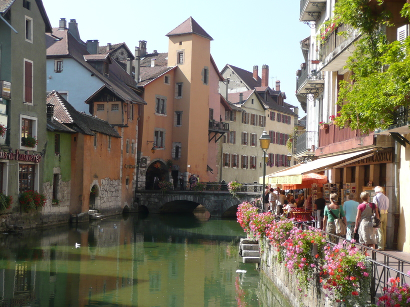 Меня пленили черепичные крыши, горшки с цветами на балконах, лепестки от которых падают в воду, яркая свежая зелень деревьев, растущих на площадях… И, конечно, живописные каналы: не зря Анси называют Савойской Венецией!