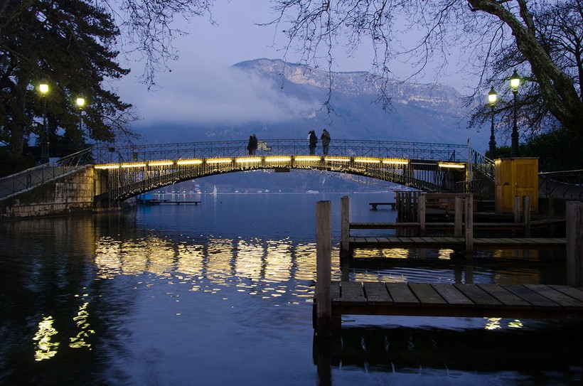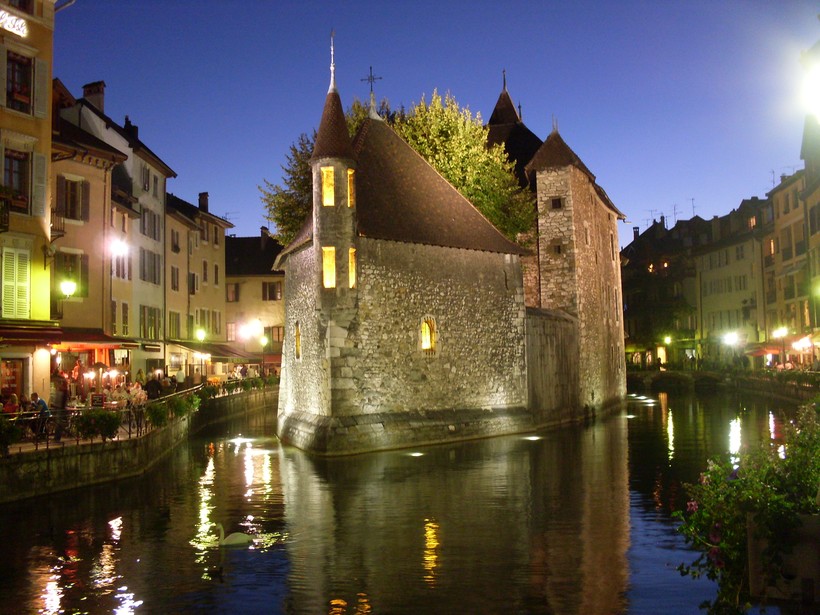 - 10:00. Начать лучше всего с улицы Сен-Клер, главной улицы Старого города. Это совершенно очаровательная авеню, которая перенесет вас в Средние века и позволит проникнуться духом Савойи. Отправляйтесь по ней в сторону озера, и вскоре Сен-Клер выведет вас к каналу Тиу, впадающему в озеро Анси. Именно там стоит знаменитый Островной дворец. Если этот музей будет открыт, то рекомендую зайти в него и полюбоваться изнутри.