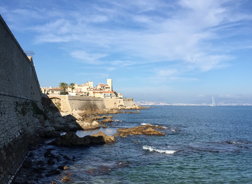 - Прогуляться вдоль мыса Cap d'Antibes по прибрежной тропе "Sеntier de Tire-Poil”. Тропа идет по причудливым скалам, нависающим над морем. Это очень красиво, но требует хорошей обуви. Я думаю, что маленьких детей брать с собой не следует. Также нельзя гулять здесь в плохую, ветреную погоду и после наступления темноты.