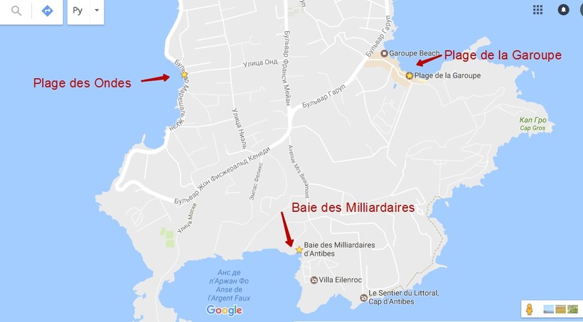 - Мыс Кап д'Антиб – в основном здесь находятся дорогие виллы. Отелей, доступных простому смертному, немного. Я бы посоветовала это место тем, кто ищет уединения и обладает транспортным средством. Пляжи мыса маленькие и в большинстве своем каменистые.