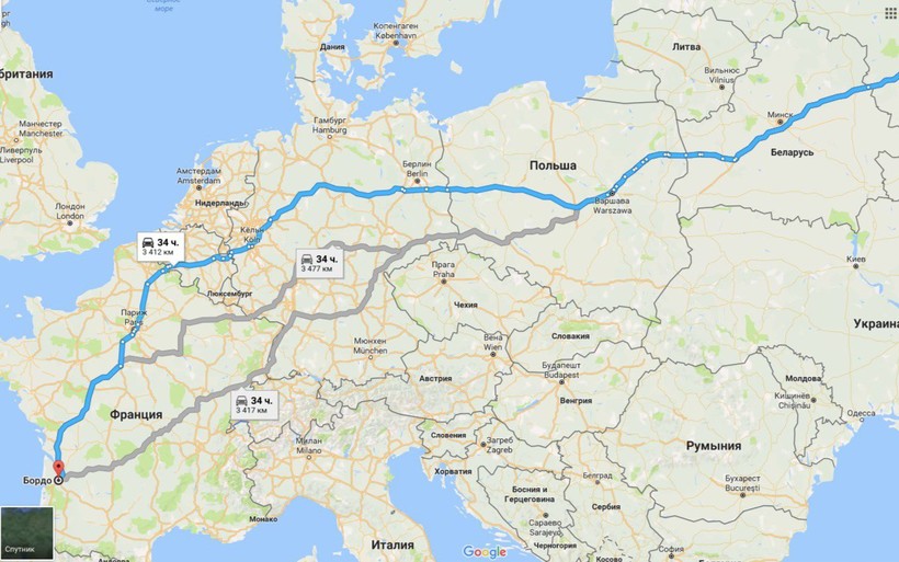 Пару лет назад мои друзья доехали из Санкт-Петербурга аж до французской страны Басков, что лежит на юго-западе Аквитании. Предположим, вы совершаете путешествие на машине в компании из четырех человек. На маршрут Санкт-Петербург — Бордо — Санкт-Петербург (через Латвию, Литву, Польшу, Германию, Люксембург и Францию) в среднем на человека уйдет около 19.000 RUB (включая платные дороги).