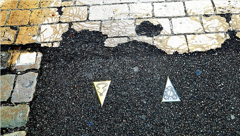 Экскурсий по Безансону мне найти не удалось, но Старый город не очень большой, поэтому за пару дней вы его точно обойдёте и увидите все основные достопримечательности, а чтобы не заблудиться, следуйте за треугольниками, как на фото ниже.