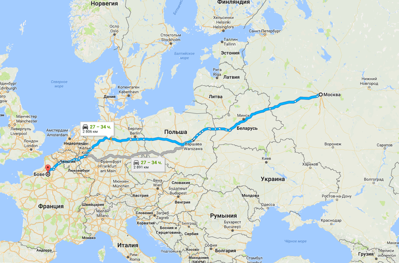 На машине до Бове, конечно, можно добраться, но рационально это делать только путешествуя компанией, в которой у минимум двоих есть международные права. Таким образом можно сменить друг друга, так как путь предстоит неблизкий — 28 часов. Необходимо будет где-то остановиться на ночлег — а это дополнительные траты, которые нужно учитывать, отдавая предпочтение этому способу передвижения.