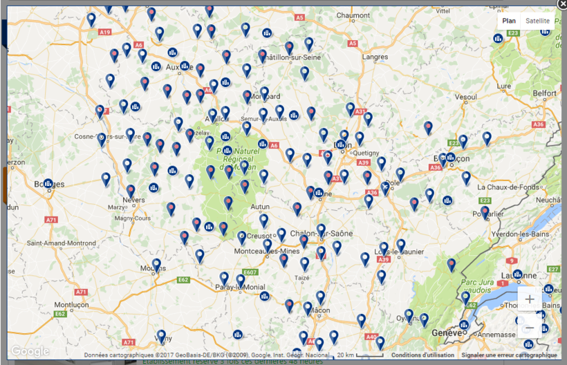 Так, например, в Бургундии, есть большое количество кемпингов, так как "на улице" ночевать запрещено. Есть такой закон, но я лично останавливался с палаткой и никто меня не оштрафовал. Стоимость кемпинга в приделах 8–20 EUR c человека. На фото ниже показаны только некоторые места для кемпингов. Все они находится за пределами больших городов. В основном это маленькие населенные пункты (деревни).