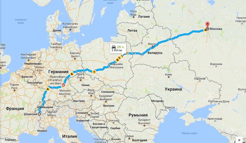 Маршрут до Шамони из Москвы будет пролегать через Беларусь, Польшу, Чехию, Германию и Швейцарию. Вот несколько моментов, которые вам надо учесть в связи с этим: