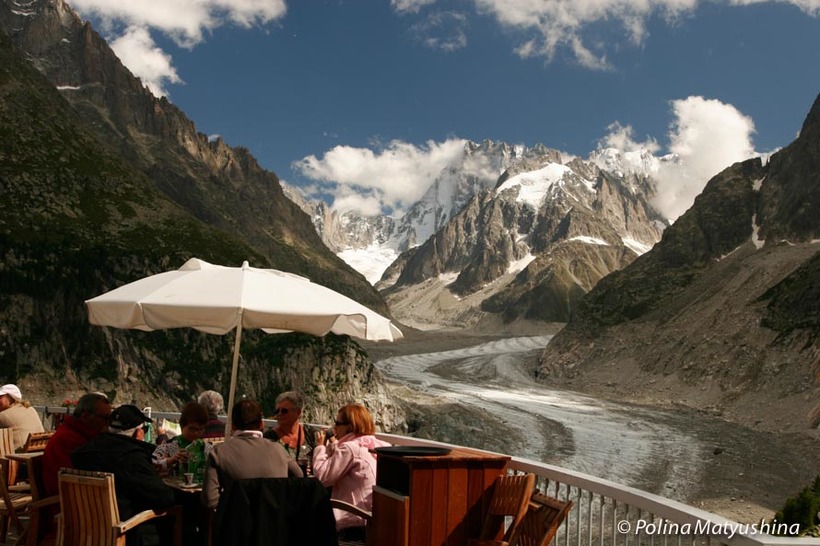 Представьте себе космических размеров снежный «язык», который медленно ползет по ущелью со скоростью 1 см в год. Его длина — 7 километров. Ширина — 200 метров. Это и есть тот самый ледник. По-французски он называется «Ледяное море». Туристов привозят по старинной зубчатой горной железной дороге, построенной аж в 1908 году. Дорога сама по себе является гордостью и достопримечательностью долины.