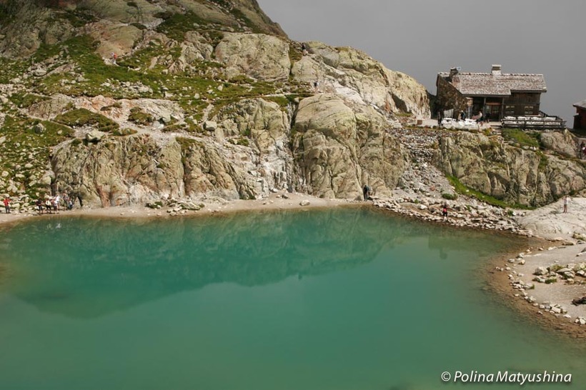 Если так далеко вам идти лень, то прямо у подъемника есть другое красивое озеро с изумрудной водой, которое так и называется — озеро Бреван. Здесь же, в небольшом деревянном домике, располагается кафе.